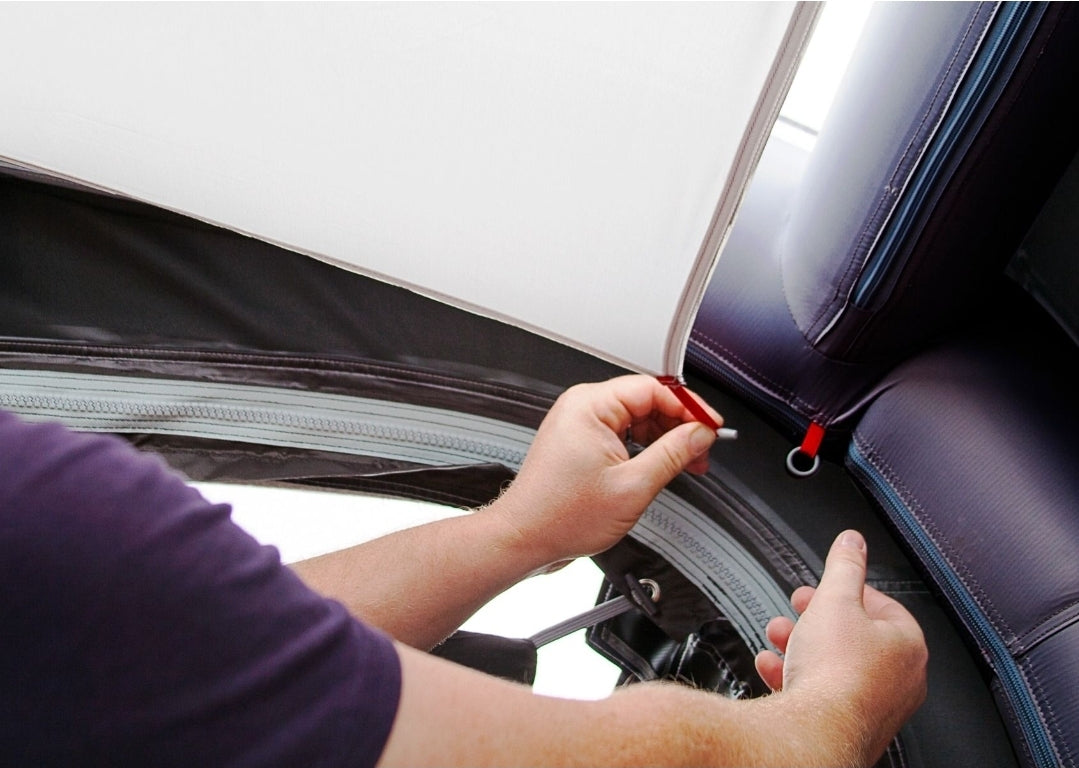 New for 2025, the all new Sport Pro 390 premium air awning is designed to offer unbeatable functionality, usability & versatility to exceed the demands of the modern caravanner. The clean understated design lines of the Sport Pro awning range are complemented with the strength of a neutral but confident colour scheme, designed to look good against any caravan or motorhome. The awning features our all new multi functional zip in- zip out curtain system with luxurious quality polycotton curtains that offers the choice of being zipped out & removed, tied back like traditional curtains, rolled & tied up or rolled & tied back left or right.